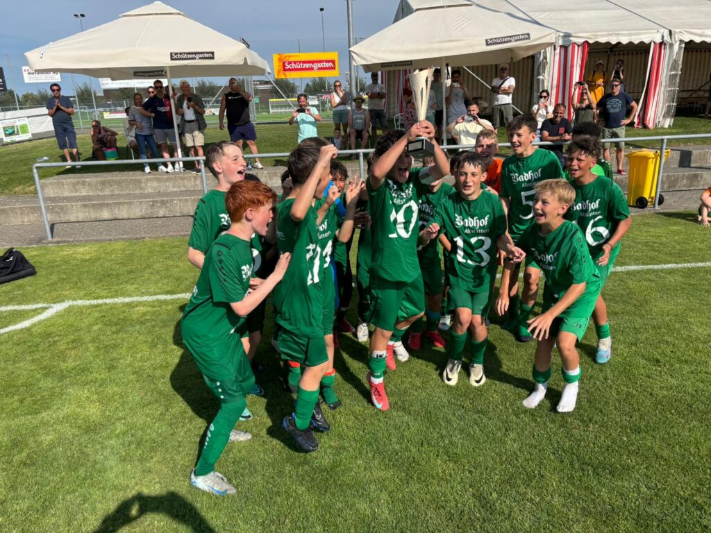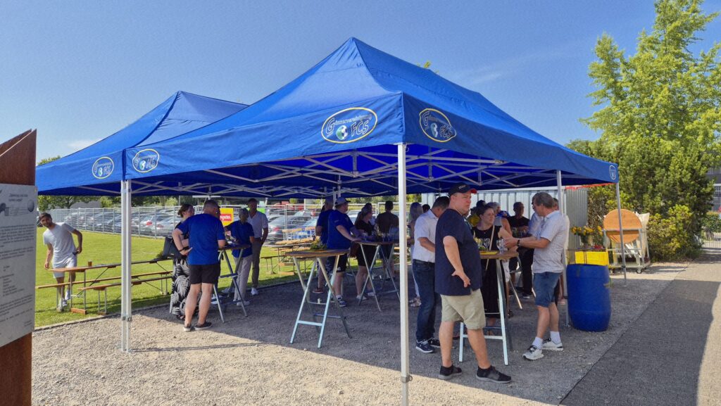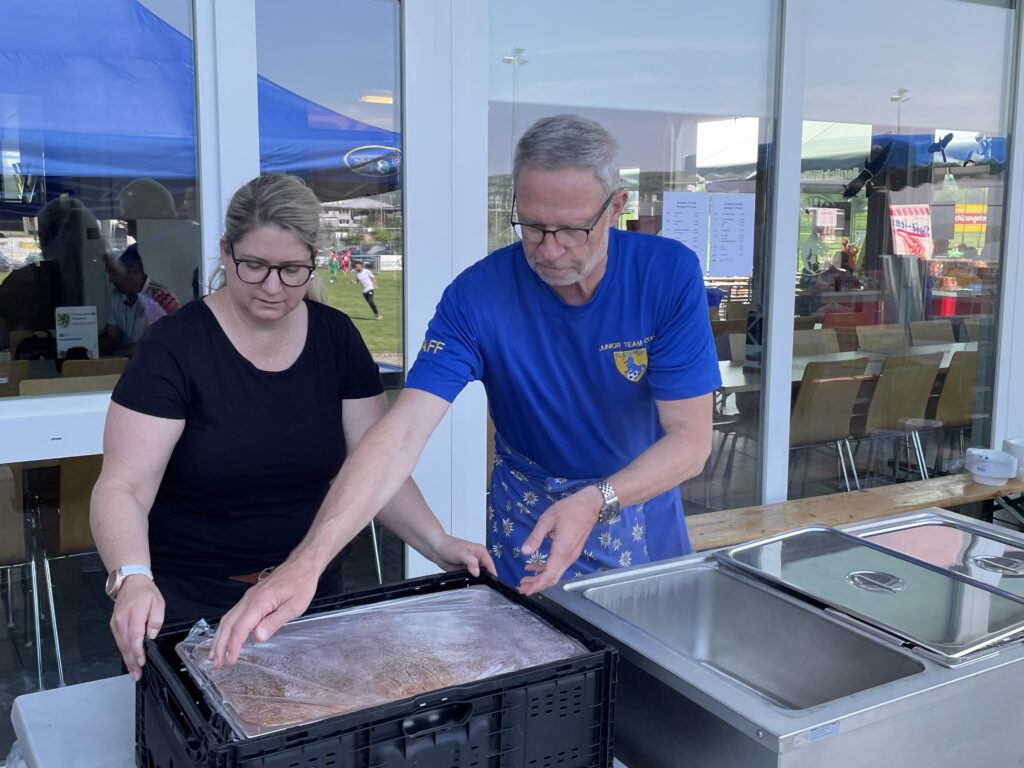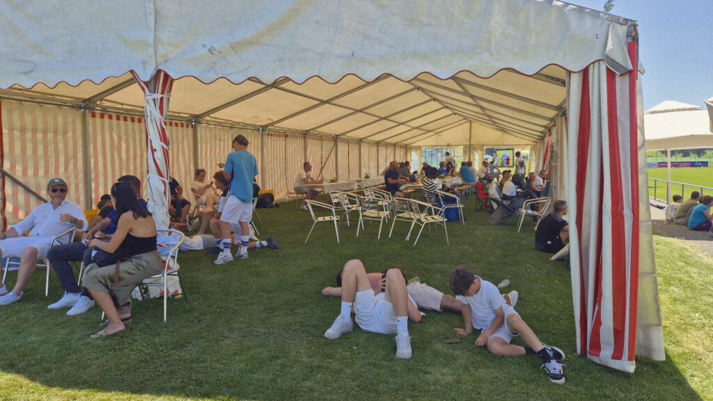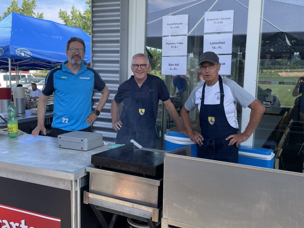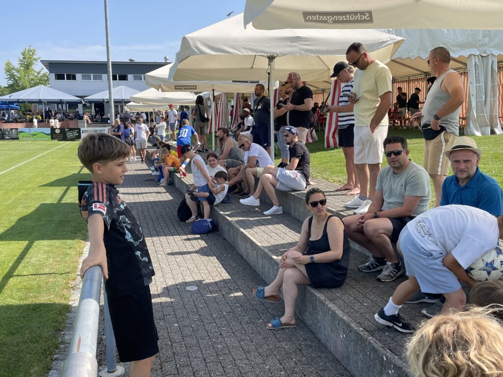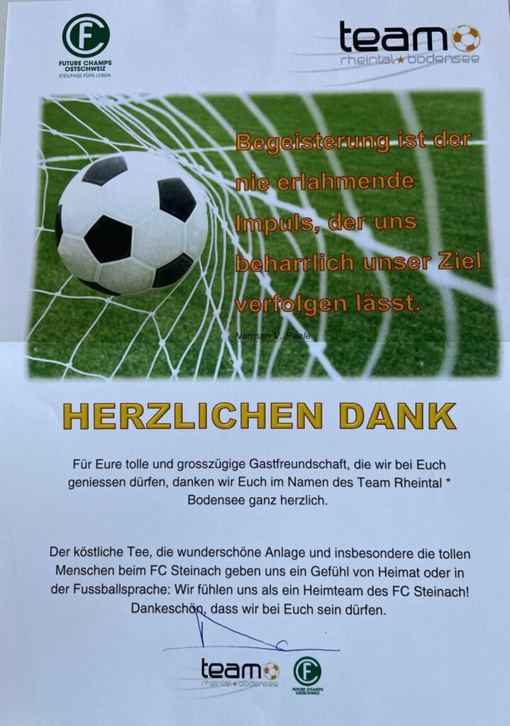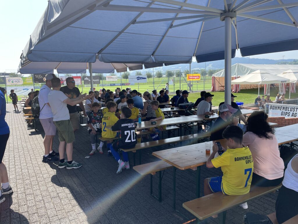 Heiss, sehr heiss war es. Aber schön. Mit vielen grossartigen Spielen und vielen talentierten, jungen und fast unermüdlichen Spielern. Mit Zuschauern, die den Schatten und das Getränk suchten und fanden. Mit gutgelaunten Helfern, die für das Gelingen des Turniers sorgten. Mit dem üblichen Apéro für unsere Sponsoren und dem Frühschoppen der Musikgesellschaft Steinach als ganz neue, beliebte Ergänzung am Sonntagmorgen. Mit attraktiv angerichteten Früchtespiesschen und Grilladen. Und mit einem berührenden Dank des Team Rheintal * Bodensee an den FC Steinach für die Gastfreundschaft das Jahr über.