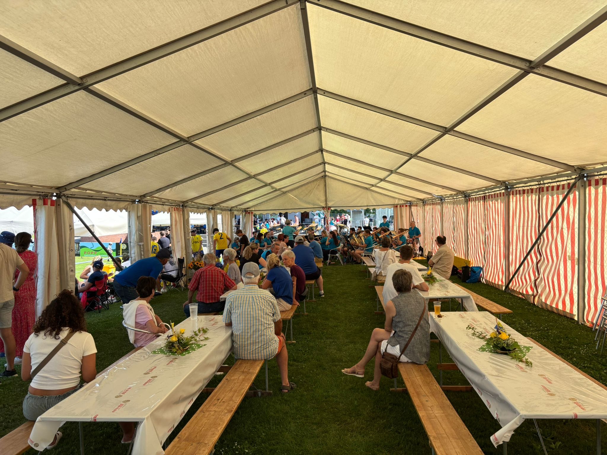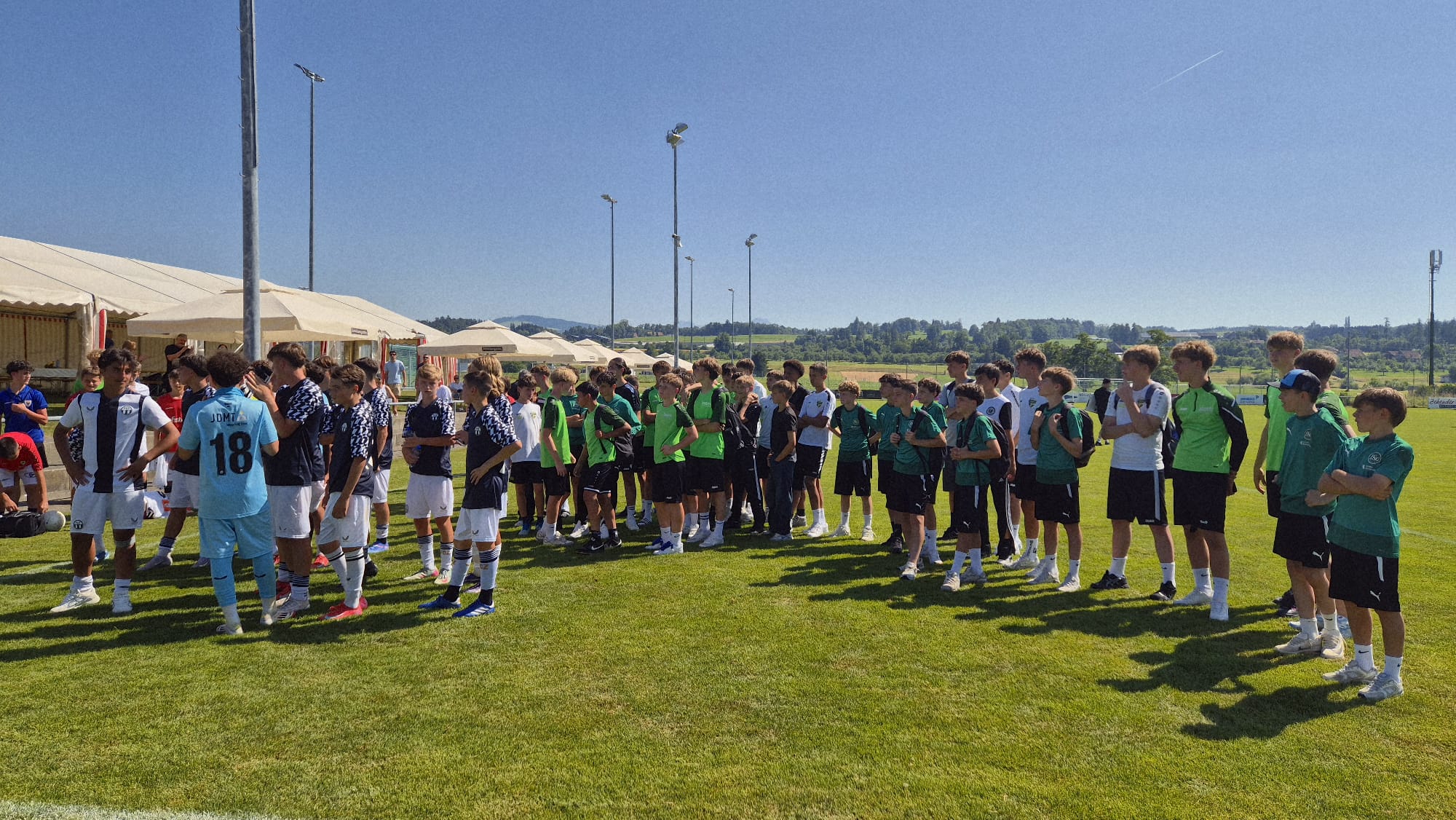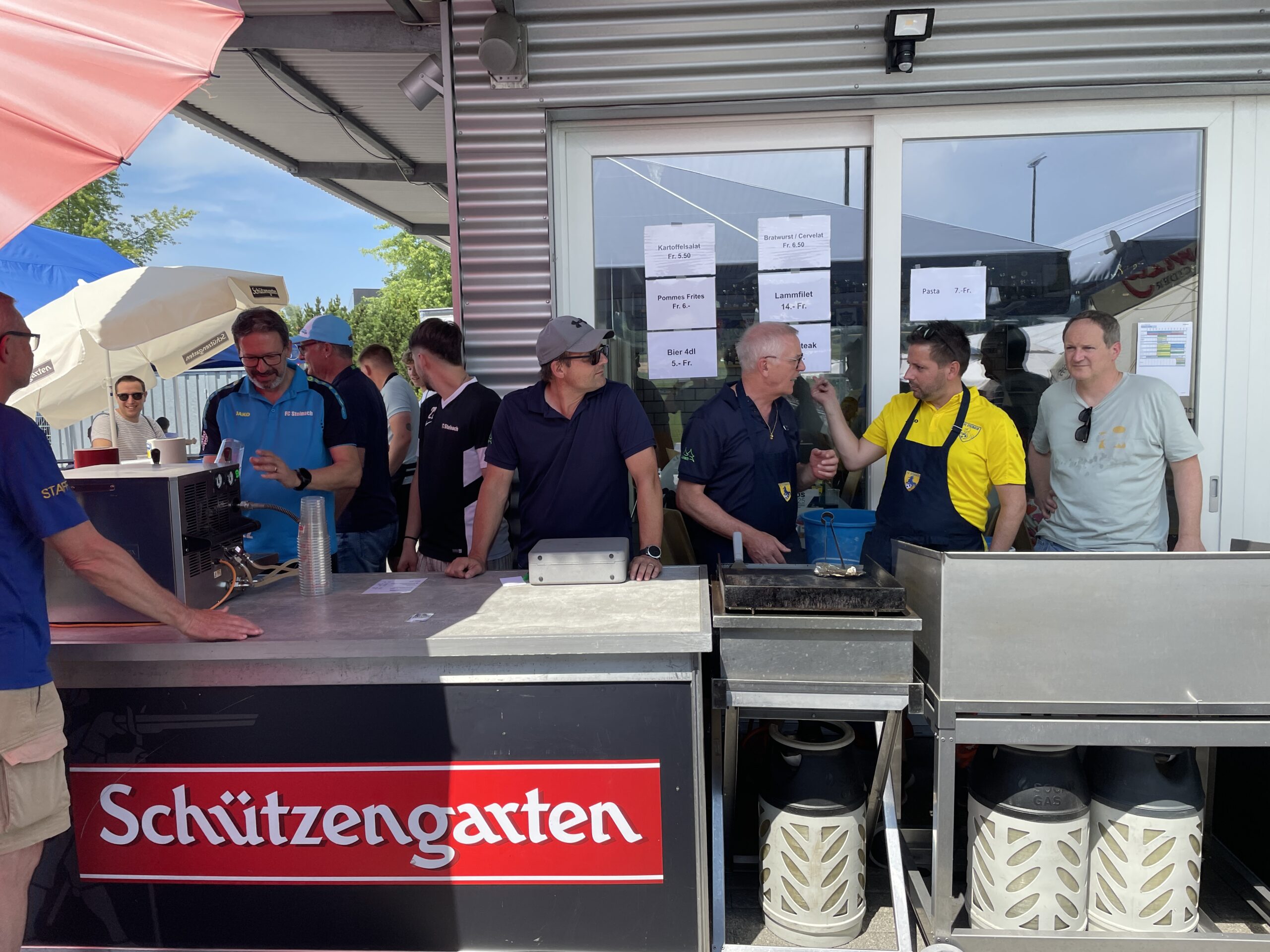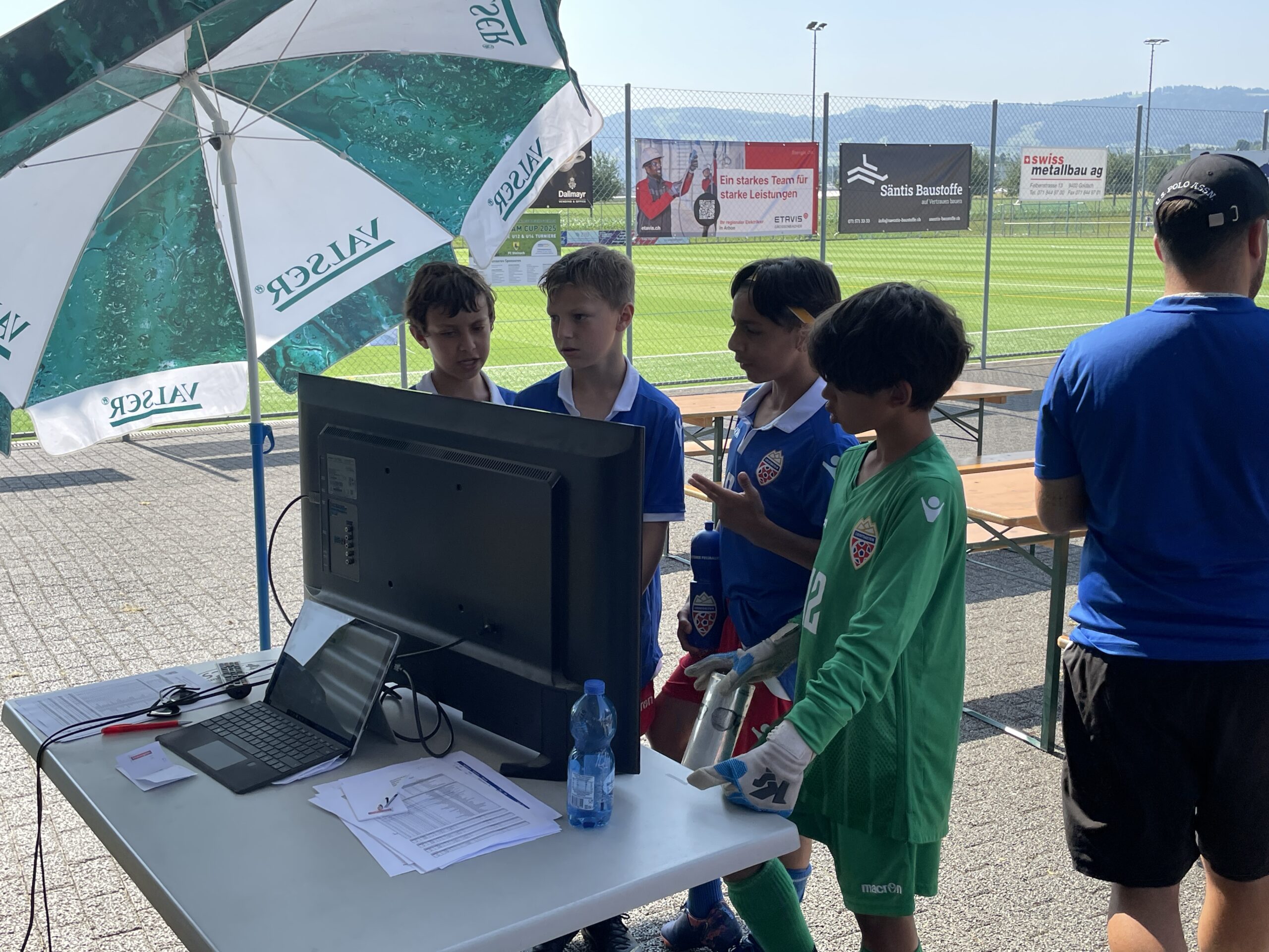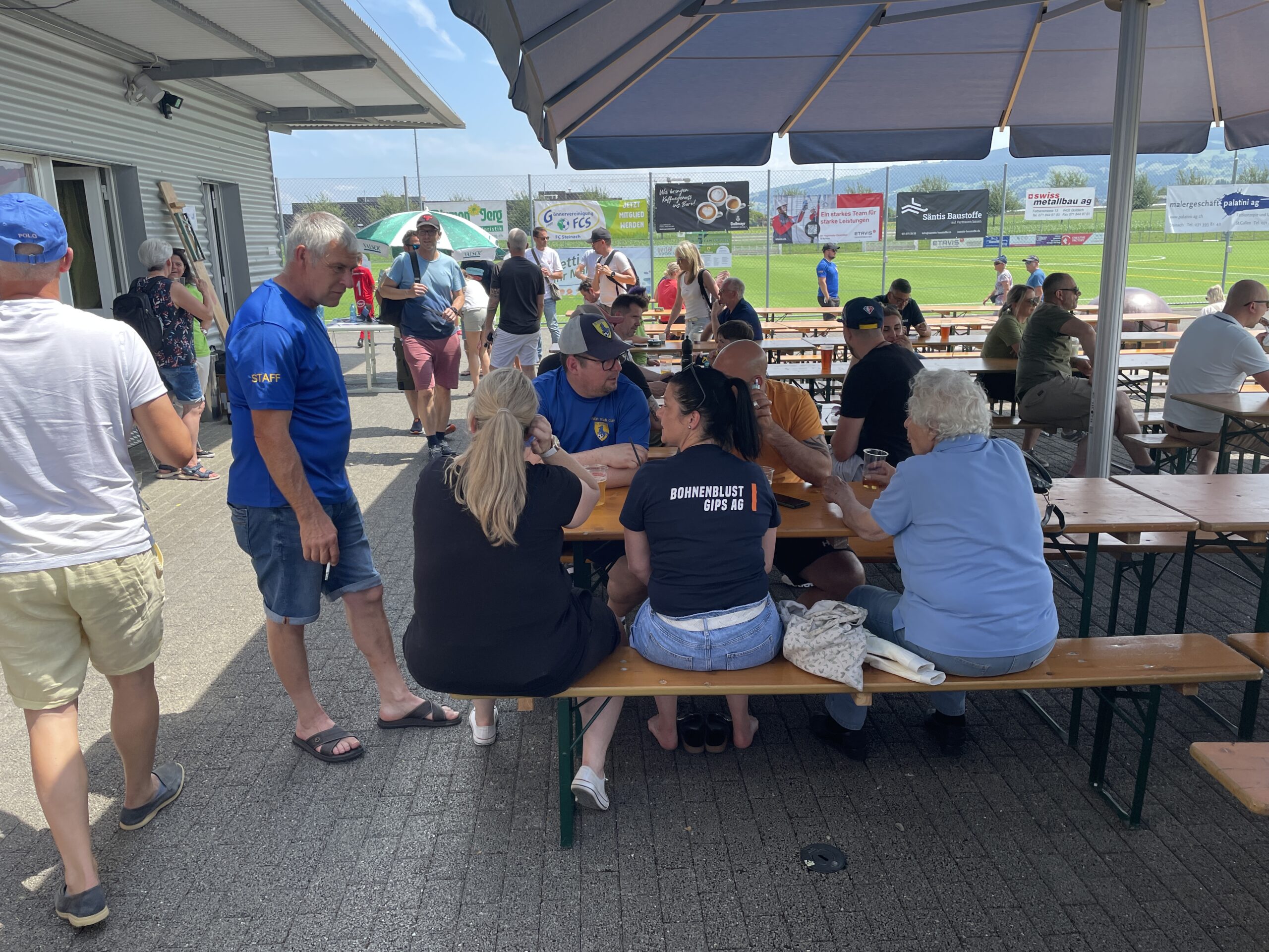 Heiss, sehr heiss war es. Aber schön. Mit vielen grossartigen Spielen und vielen talentierten, jungen und fast unermüdlichen Spielern. Mit Zuschauern, die den Schatten und das Getränk suchten und fanden. Mit gutgelaunten Helfern, die für das Gelingen des Turniers sorgten. Mit dem üblichen Apéro für unsere Sponsoren und dem Frühschoppen der Musikgesellschaft Steinach als ganz neue, beliebte Ergänzung am Sonntagmorgen. Mit attraktiv angerichteten Früchtespiesschen und Grilladen. Und mit einem berührenden Dank des Team Rheintal * Bodensee an den FC Steinach für die Gastfreundschaft das Jahr über.