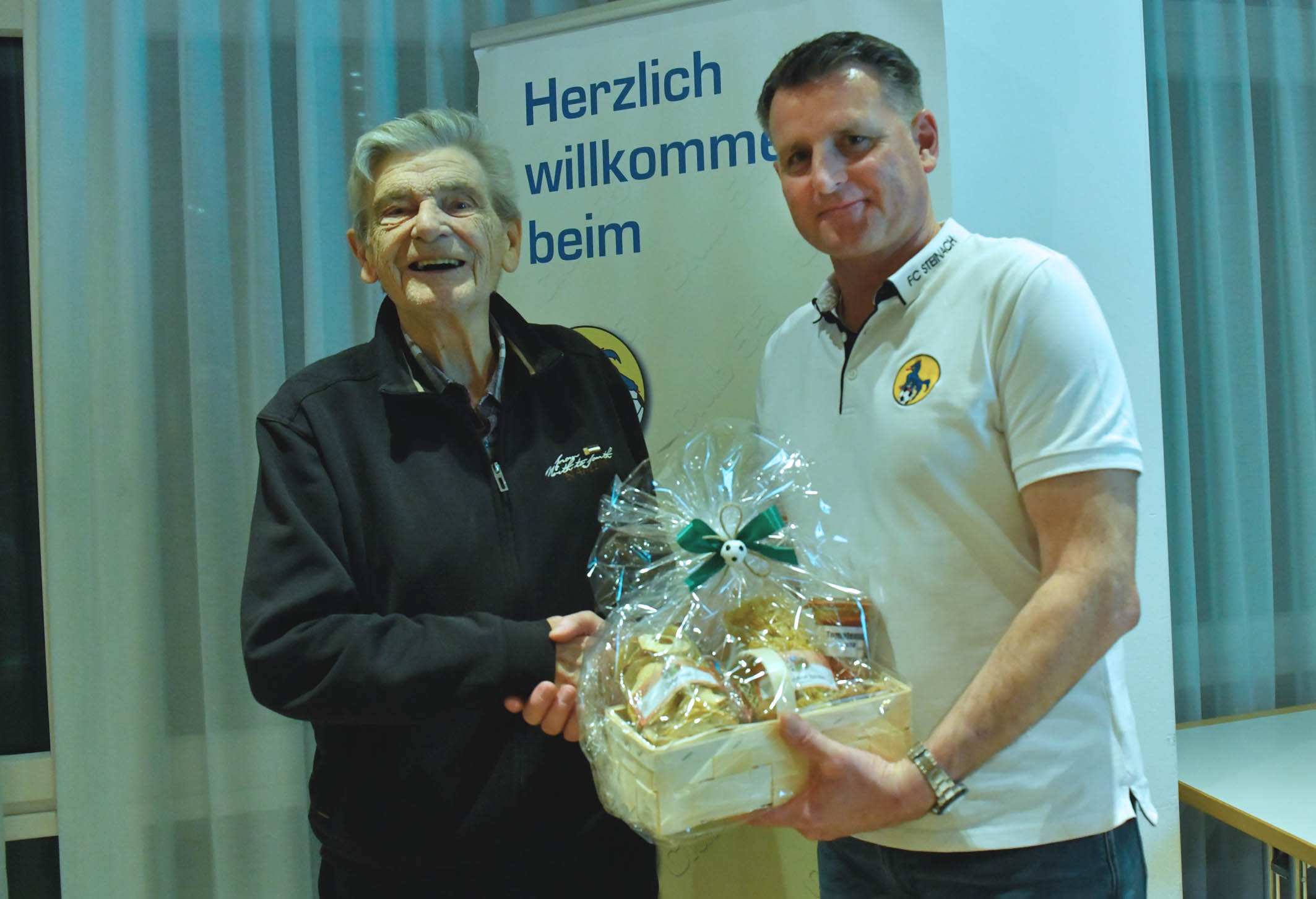 Präsident Wolfgang Steiger konnte nebst zahlreichen Ehrungen den Steinacher Alois (Wisi) Purschke als ältestes Ehrenmitglied des Vereins erwähnen und ihm gratulieren. Purschke erhielt im Jahr 1970 als erstes Mitglied diese Auszeichnung, hatte in den 60iger Jahren schon beim Bau des alten Fussballplatzes im Schöntal in Fronarbeit mitgewirkt und ist Gründungsmitglied des FC Steinach. (Text und Bilder: Fritz Heinze)